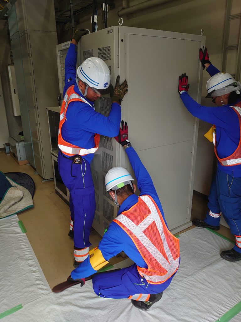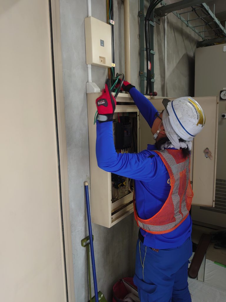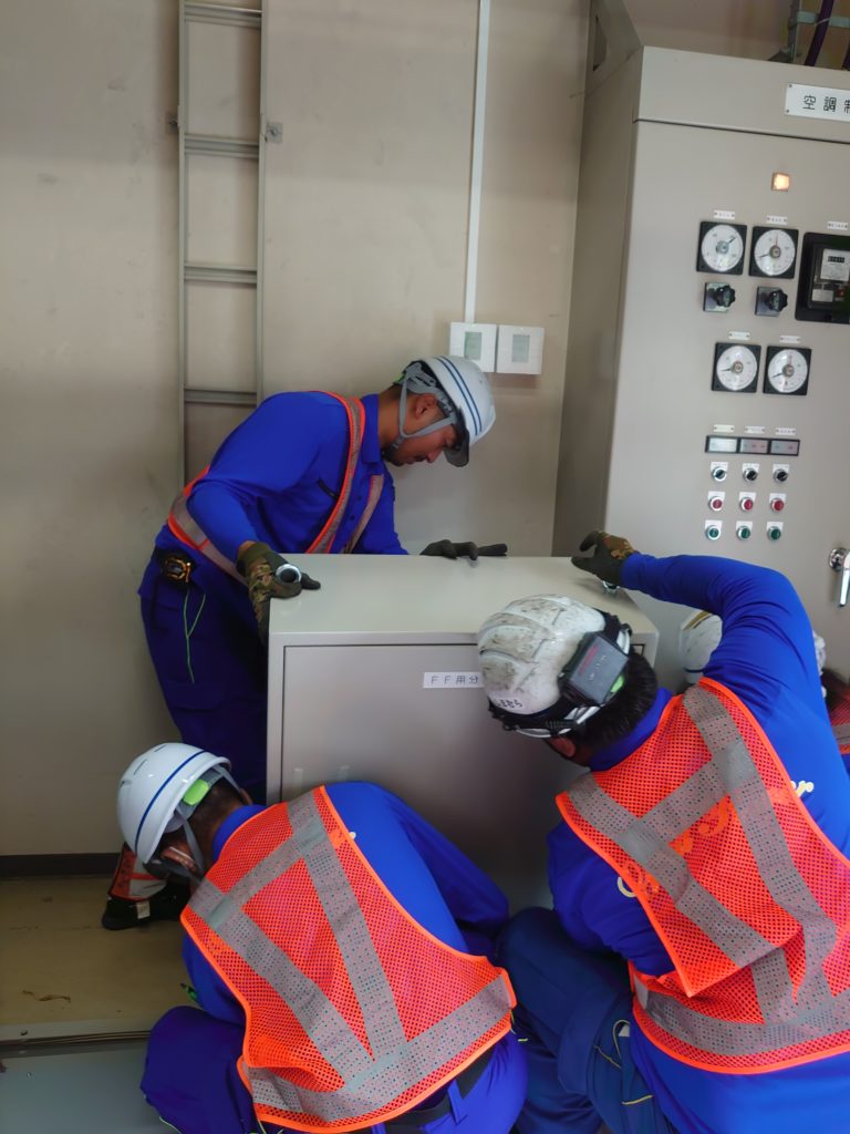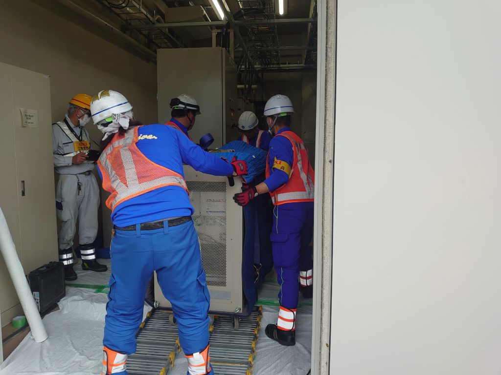 盤搬入・配線作業 投稿日 2023年6月22日 著者 yoshikawa カテゴリー 重量工事 通信機械室にサーバーと分電盤を搬入しました。既存設備を傷つけないよう養生と安全に設置できるよう色々な搬入道具を使って搬入しました。下準備には何十分とかかるけど搬入は数分で終わります。でもしっかり準備しないと事故につながるので入念に準備します。 盤搬入作業 通信機械室 電気室 高速道路 この記事を書いた人 yoshikawa 記事一覧