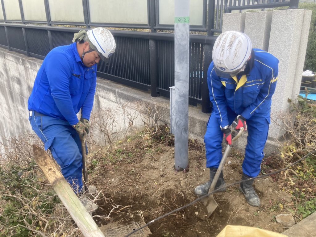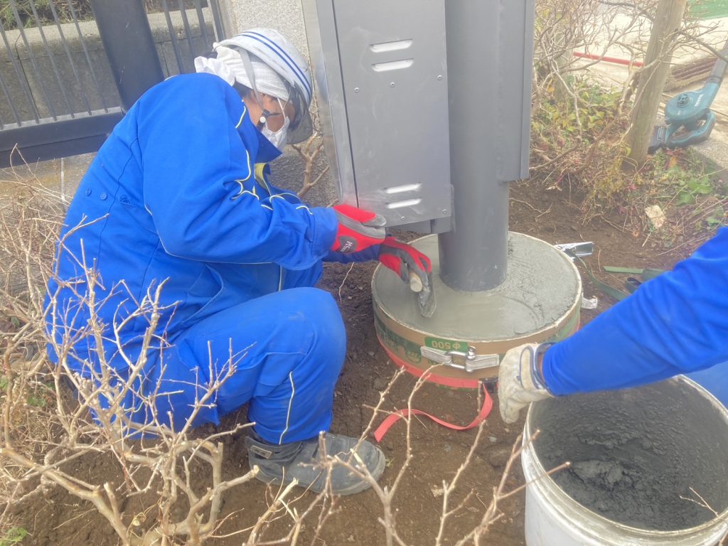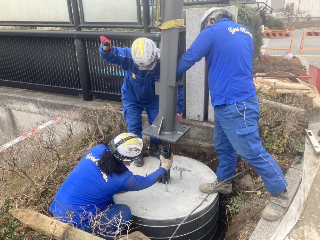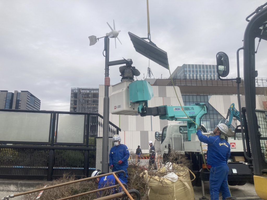 去年末から今年の春頃に施工した自然エネルギーを利用した発電機能付きの照明柱を取り付けた様子を紹介します。