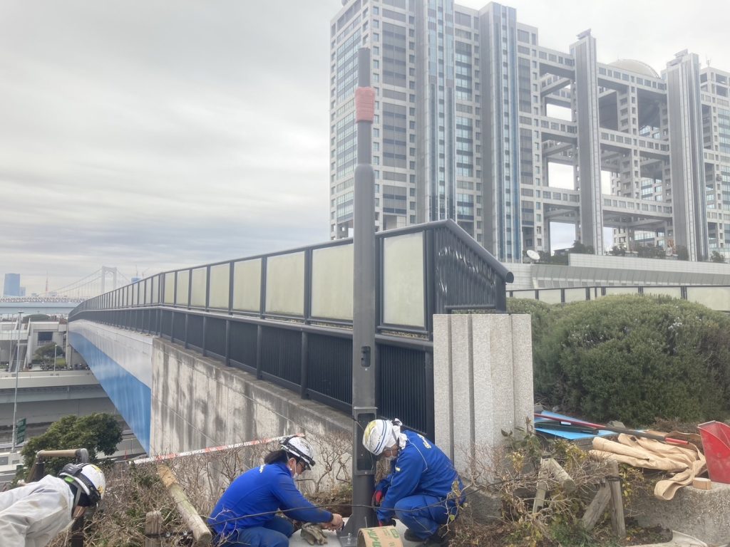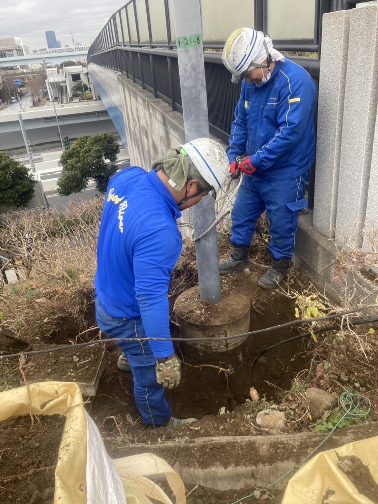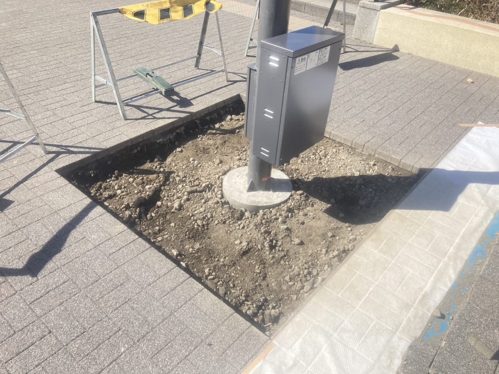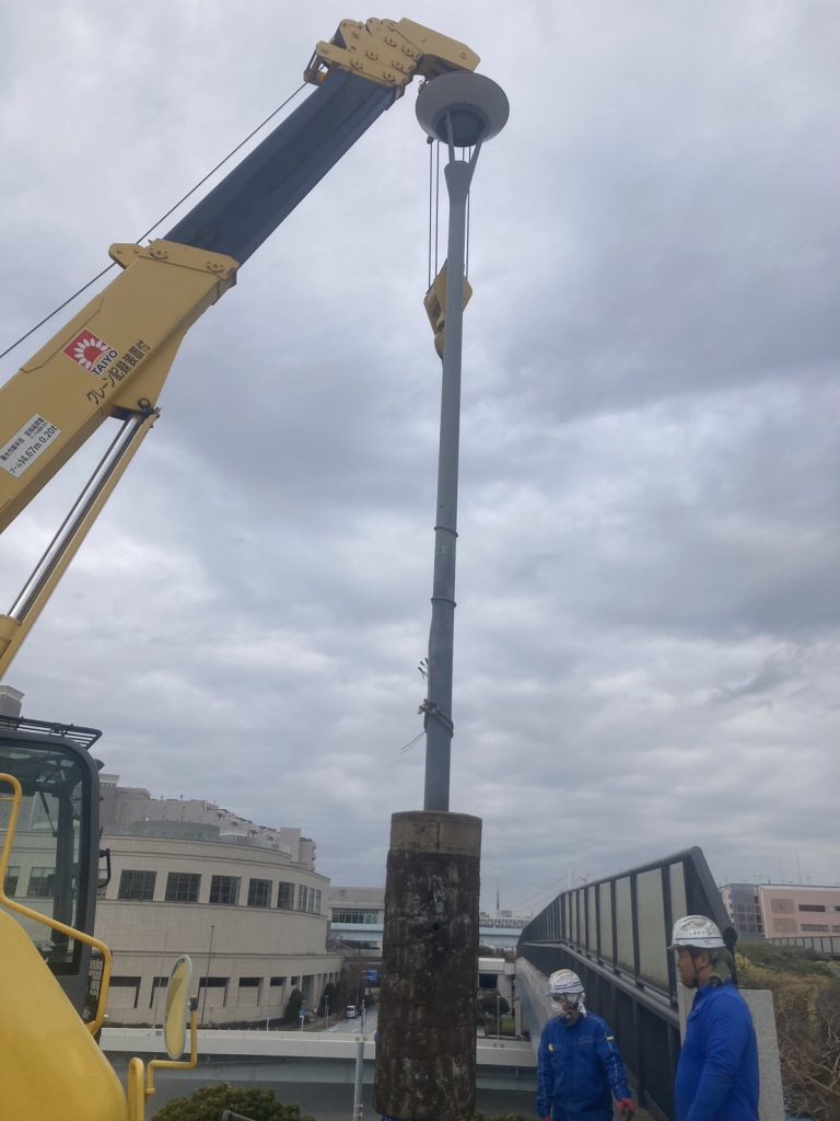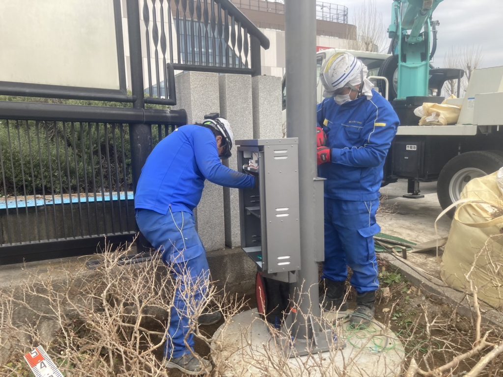 去年末から今年の春頃に施工した自然エネルギーを利用した発電機能付きの照明柱を取り付けた様子を紹介します。